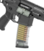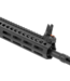 At the top of the handguard is a Weaver/Picatinny scope rail, which runs over the upper receiver. This scope rail is equipped with a so-called dual profile rear and front sight as standard. This allows them to be used in two ways. When the rear and front sight are upright, you use the relatively common aiming devices in the form of a round opening and a narrow rod. When the rear and front sight are folded up, you use the green optical fiber to aim. The rear and front sight are easy to remove, making it easy to equip the Weaver/Picatinny scope rail with a red dot or rifle scope. This makes the G&G TR16 GMS MK1 9’’ airsoft replica ideal for aiming at targets at different distances.